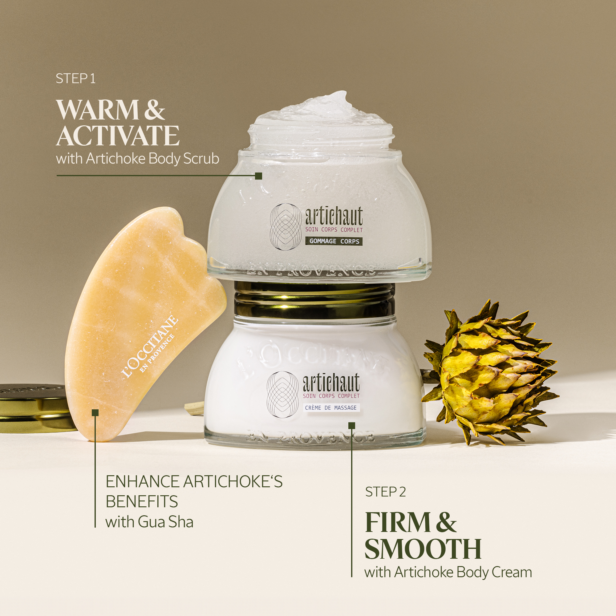 1Routine includes Artichoke Body Scrub + Artichoke Body Cream + Gua Sha with massage technique