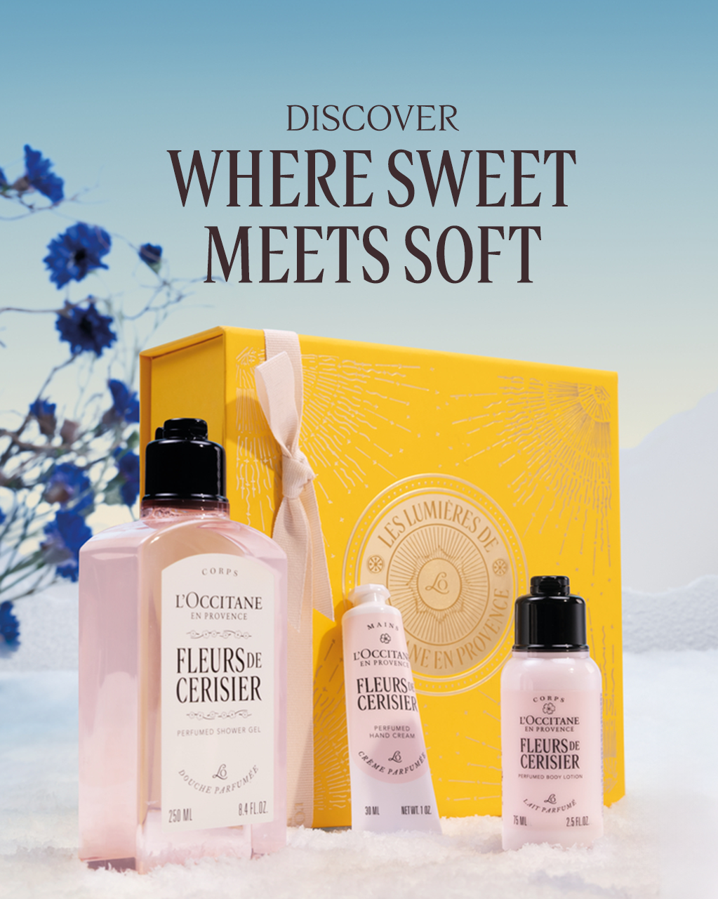 Discover where sweet meets soft in this cherry blossom gift set.