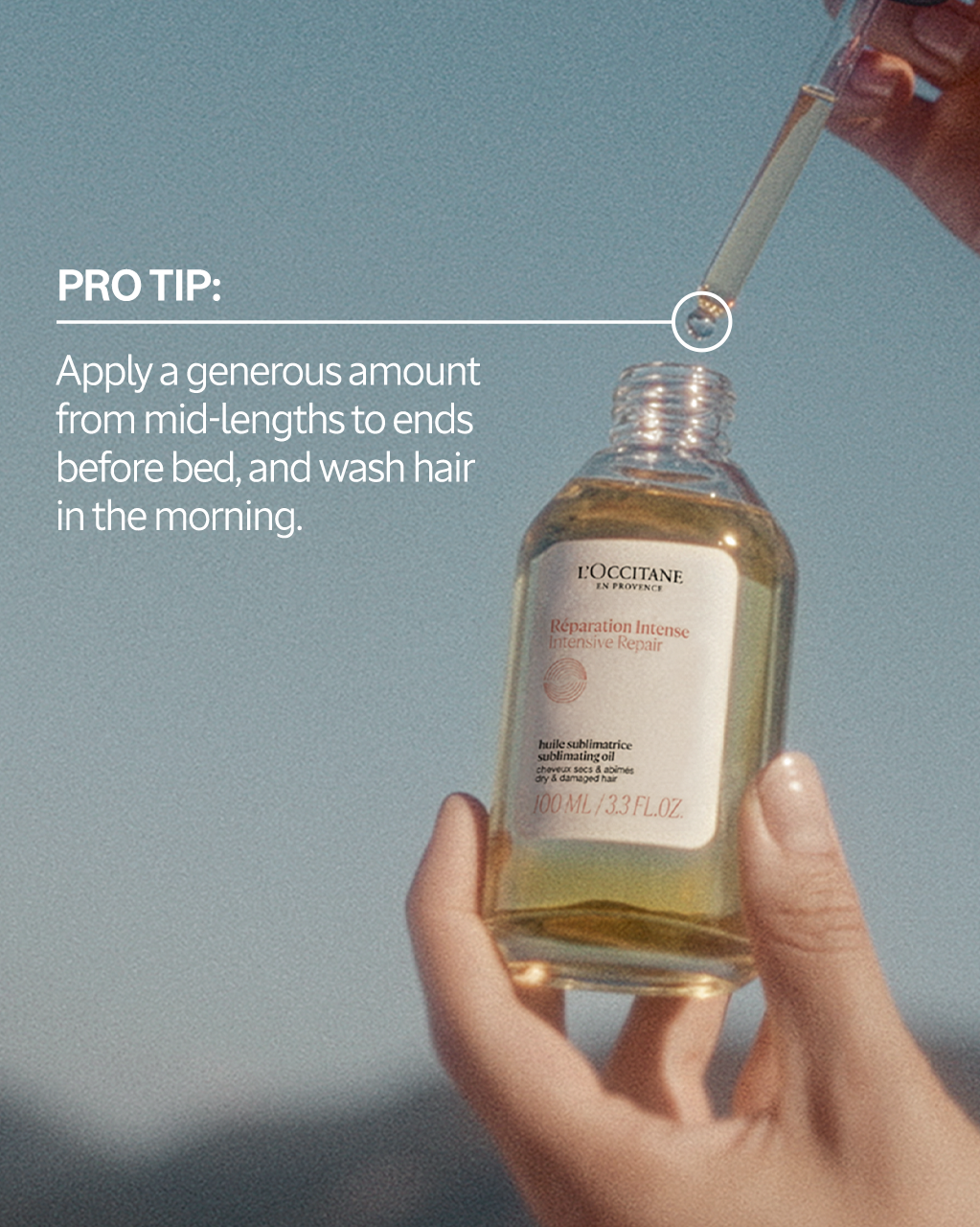 The Sublimating Oil repairs and protects your hair, even the colored one, by bringing back essential lipids. Thanks to a unique combination of skincare inspired ingredients and natural extracts, hair is left nourished, shiny and soft. Frizz, split ends and breakage are visibly reduced.
