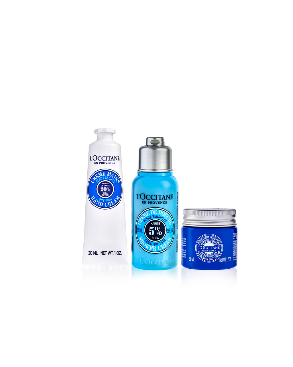 Shea Butter Hand Cream (30ml; Net wt. 1 oz.) to transform hands from dry to soft and supple. This trio was made for all skin types.